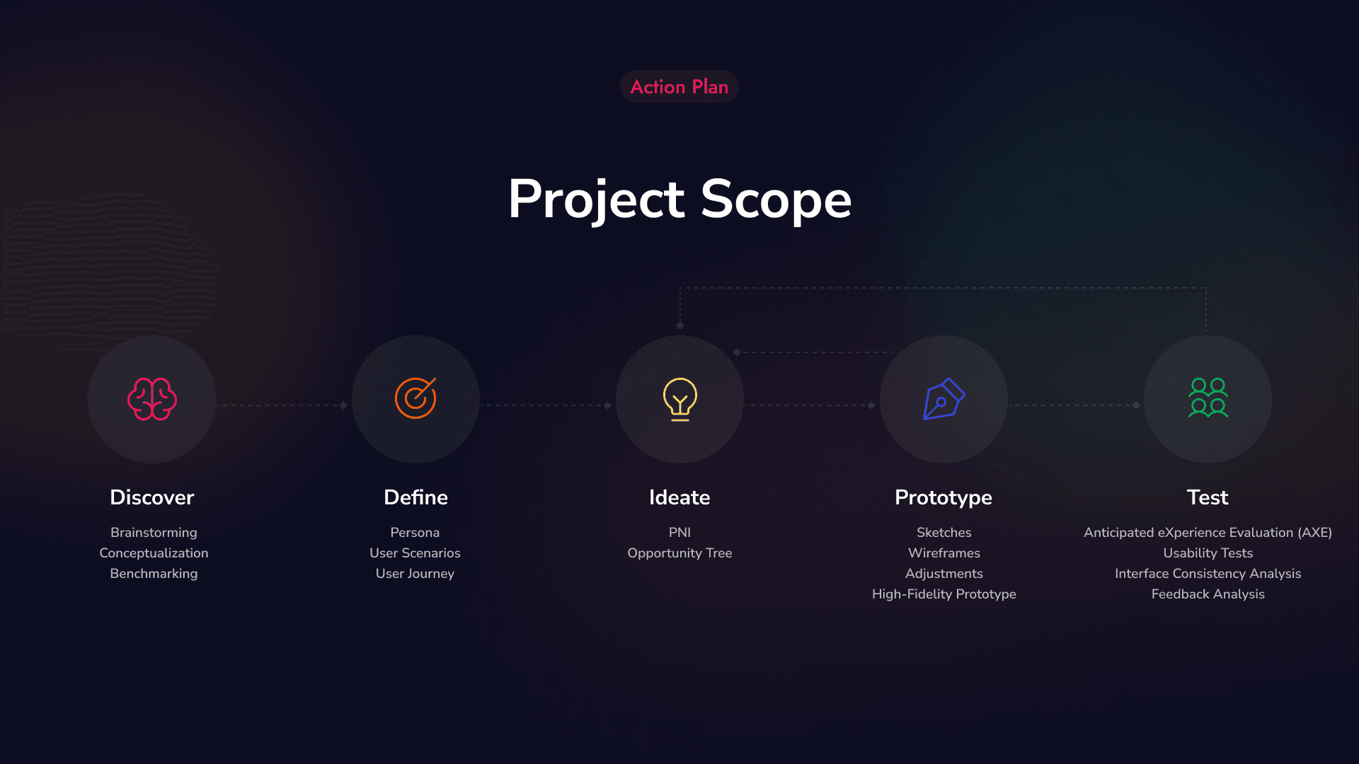 Our journey to create Eckoo began in November 2021, and followed the Design Thinking Methodology. This process was divided into five iterative phases, each playing a crucial role in shaping Eckoo into the platform the users expected. Let’s break it down: