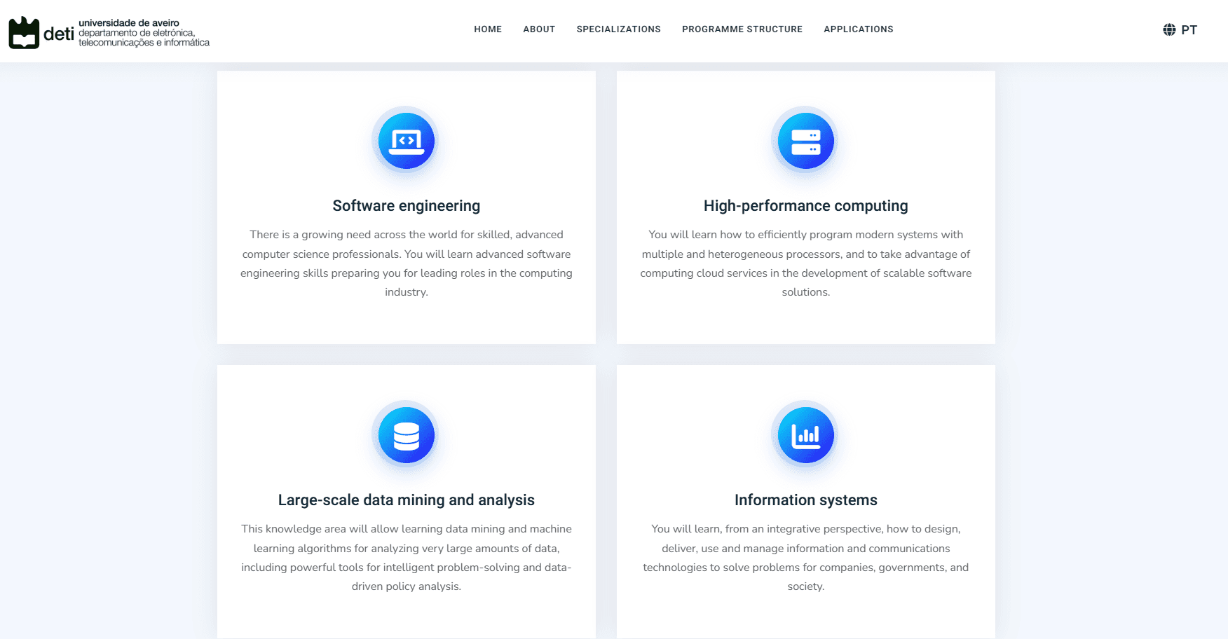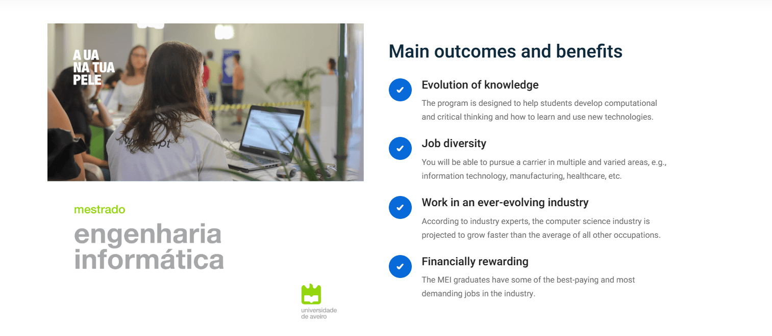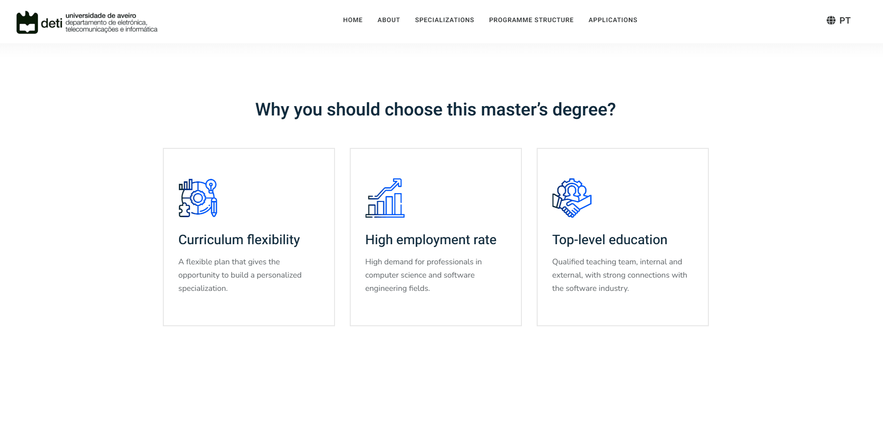 By transforming the University of Aveiro’s course page into a well-structured and engaging landing page, we successfully created a more compelling and user-friendly experience. The new design ensures that prospective students can quickly find relevant information, feel confident about their choice, and take the next step by visiting the application page.