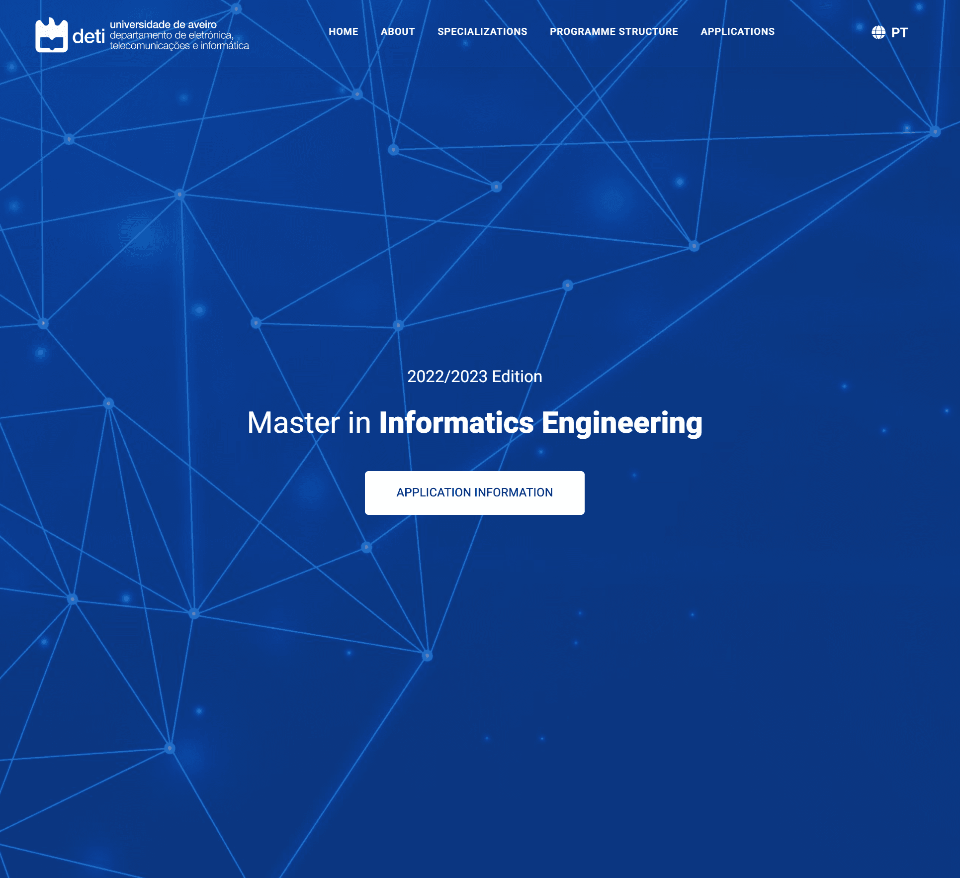 The University of Aveiro's existing course page was a standard institutional webpage that lacked detailed information about the benefits, opportunities, and motivations for choosing a Master's program. The department overseeing the Masters Program recognized the need to create a new website that contained these essential details, ensuring prospective students could easily access relevant information and navigate the application process.
